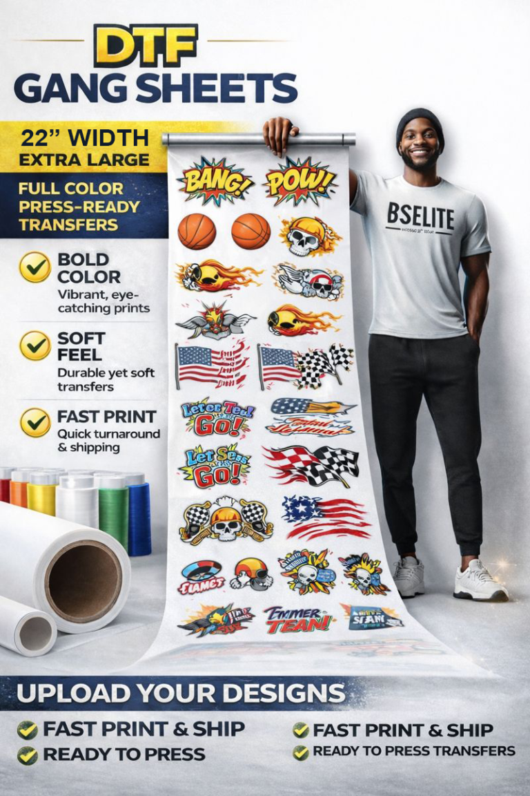 DTF Gang Sheets, Custom Apparel, Embroidery & More — Printed Clean and Done Right.